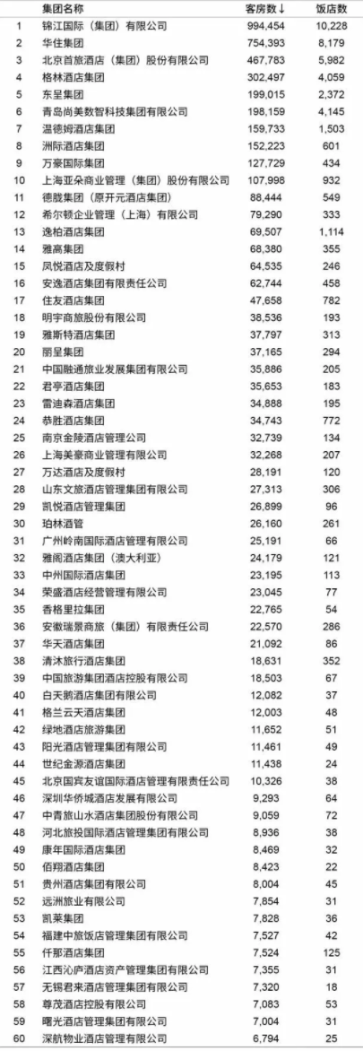 中国饭店集团60强名单 中国旅游饭店业协会 供图
