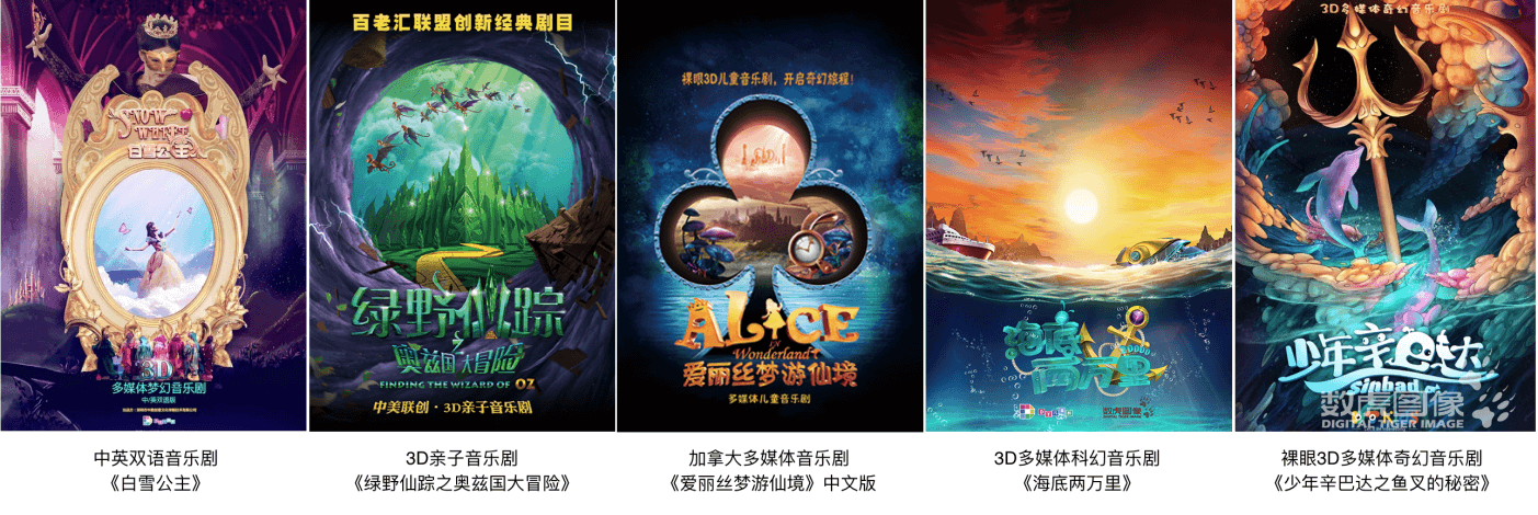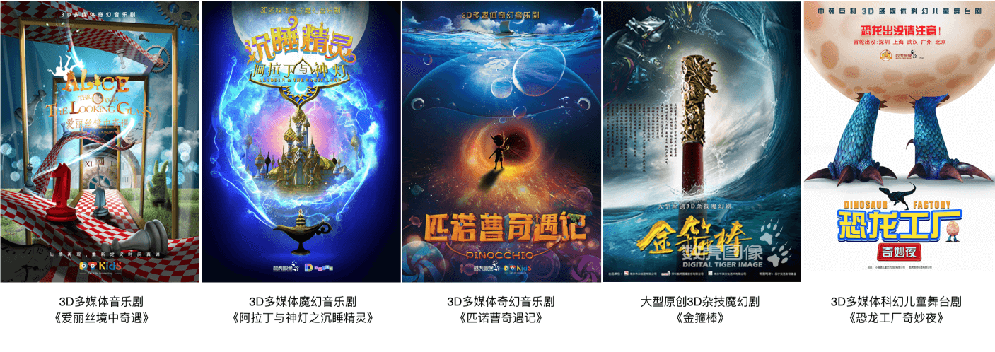 儿童剧:DT儿童剧开辟投资出品、定制开发、全球巡演及授权驻演合作模式,目前已经有十部高人气大型裸眼3D多媒体亲子音乐剧。