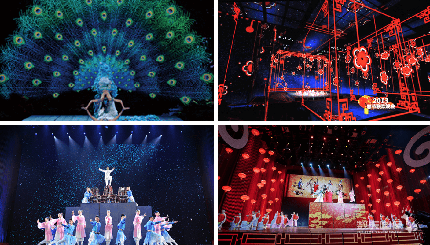旅游演艺: 数虎图像提供创意设计、舞美视频制作专项服务;以及视觉创意为核心,导演、策划、设计、制作、工程实施于一体的整案服务。