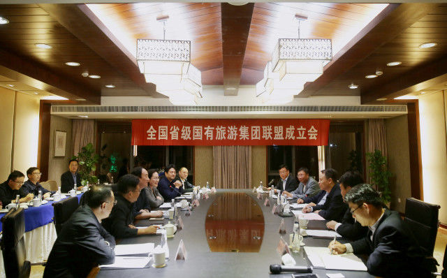 ▲成立仪式现场 据悉,目前全国已有25个省、市、自治区成立了省级国有旅游集团。 为更好的发挥国有经济在中国旅游业转型发展中的主导地位,推动全国省级国有旅游集团在旅游产业大发展中起到示范引领作用,在打造人民更加满意的现代服务业中更有作为,“全国省级国有旅游集团联盟”应运而生。 这是全国首个省级国有旅游集团联盟,是一个交流合作与联合投资的平台,也是全国旅游界规格最高的旅游资源共享平台。这标志着全国国有旅游集团将组成大合唱,形成联动机制,实现优势互补、资源整合、信息共享、抱团发展。 ▲全国省级国有旅游集团联盟成立会议 联盟以“合作交流、共建共享”为宗旨,采用轮值主席制。成员以全国省级国有旅游集团为主体,并邀请全国旅游规划设计机构、营销策划机构、旅游科研单位、品牌投资商、基金与金融公司等与联盟互动,满足合作需求。 联盟充分体现互助性、联谊性和公益性,通过建立合作交流、投融资、人才培训、联盟智库等平台,形成信息交流、业务合作、资源共享机制,为各成员单位发展提供政策指导、项目合作、融资渠道、品牌引进、营销宣传等全方位支持。
