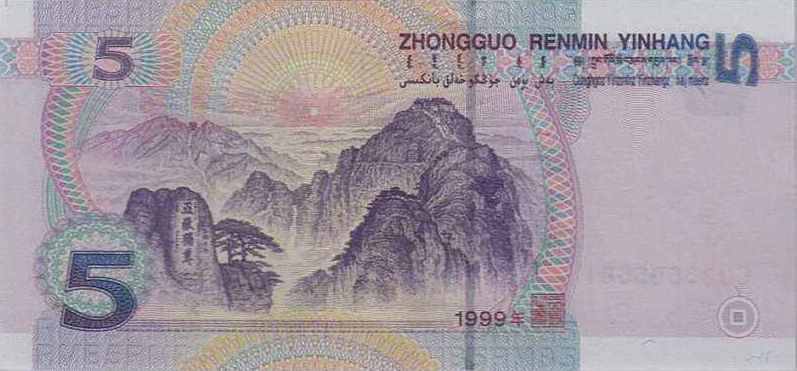在5元票面上的泰山图案也采用了空间“蒙太奇”的手法,把“五岳独尊”的石刻和泰山主峰两个场景叠加到了一起,事实上,这个场景并不是真实存在的。