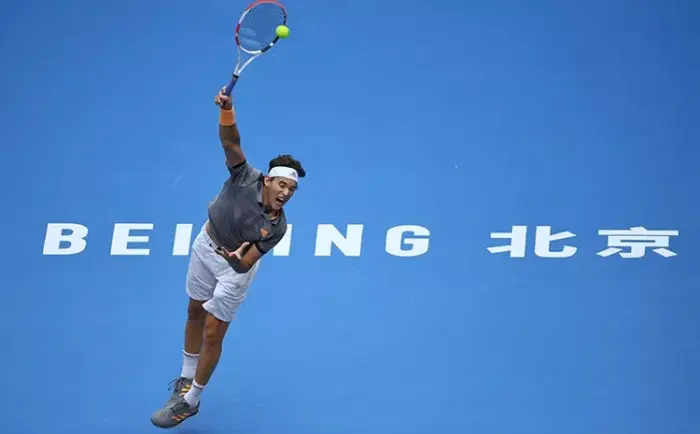 中国网球公开赛男单比赛奥地利选手蒂姆发球(来源:新京报)