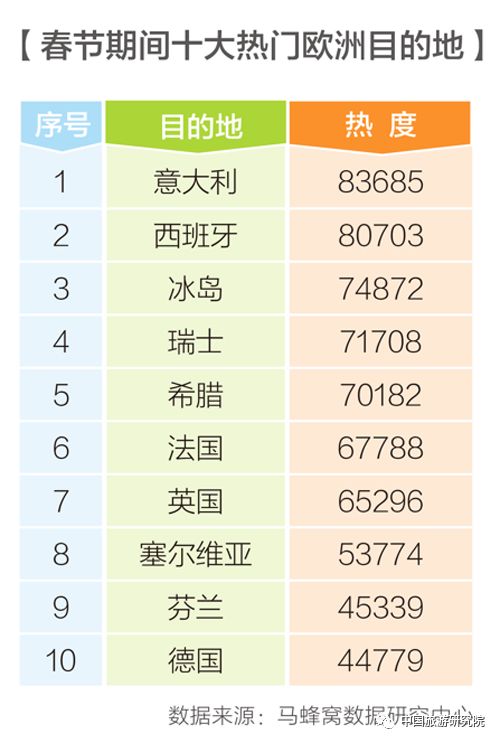 表3 春节期间十大热门欧洲旅游目的地
